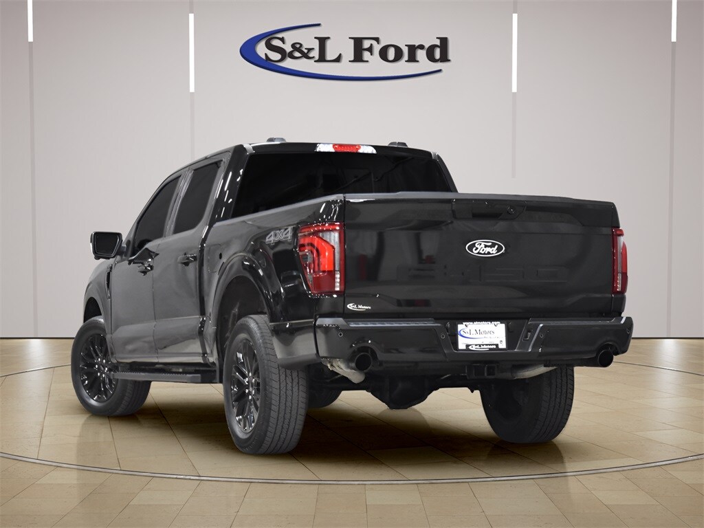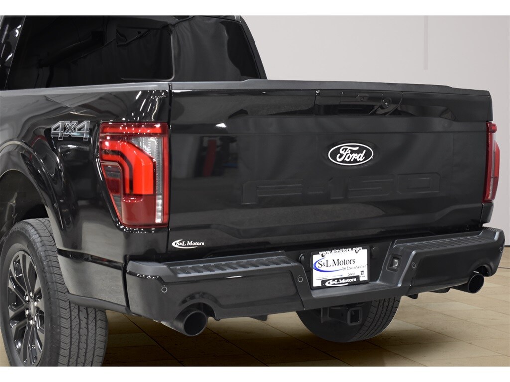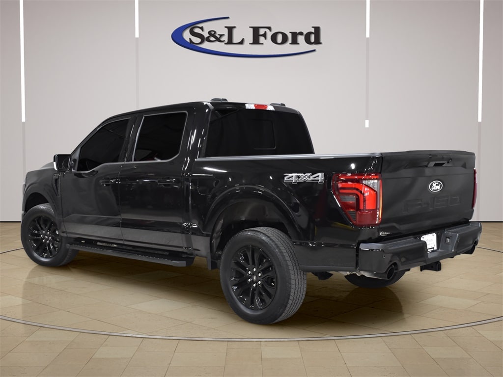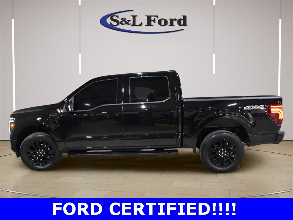 AGATE BLACK METALLIC 2025 F-150 LARIAT SUPERCREW 4X4 WITH THE BLACK APPEARANCE GROUP. GLOSS BLACK 20" WHEELS, 3.5L ECOBOOST TWIN TURBO, HEATED AND COOLED PREMIUM LEATHER, POWER DRIVER AND PASSENGER SEATS, TOUCHSCREEN INFOTAINMENT CENTER, BANG & OLUFSEN PREMIUM AUDIO SYSTEM, BACKUP CAMERA, POWER SLIDING REAR WINDOW, REMOTE START SYSTEM, BLACK SIDE STEPS, CLEAN CARFAX VEHICLE HISTORY REPORT AND FORD FACTORY CERTIFIED WITH 100,000 MILE WARRANTY!